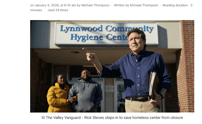 Rick Steves at Lynnwood Hygiene Center event In December, My Neighborhood News Group reporter Angelica Relente wrote about Edmonds-based travel guide and philanthropist Rick Steves and his purchase of the Lynnwood Hygiene Center building. Relente …